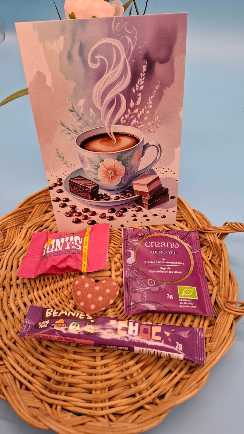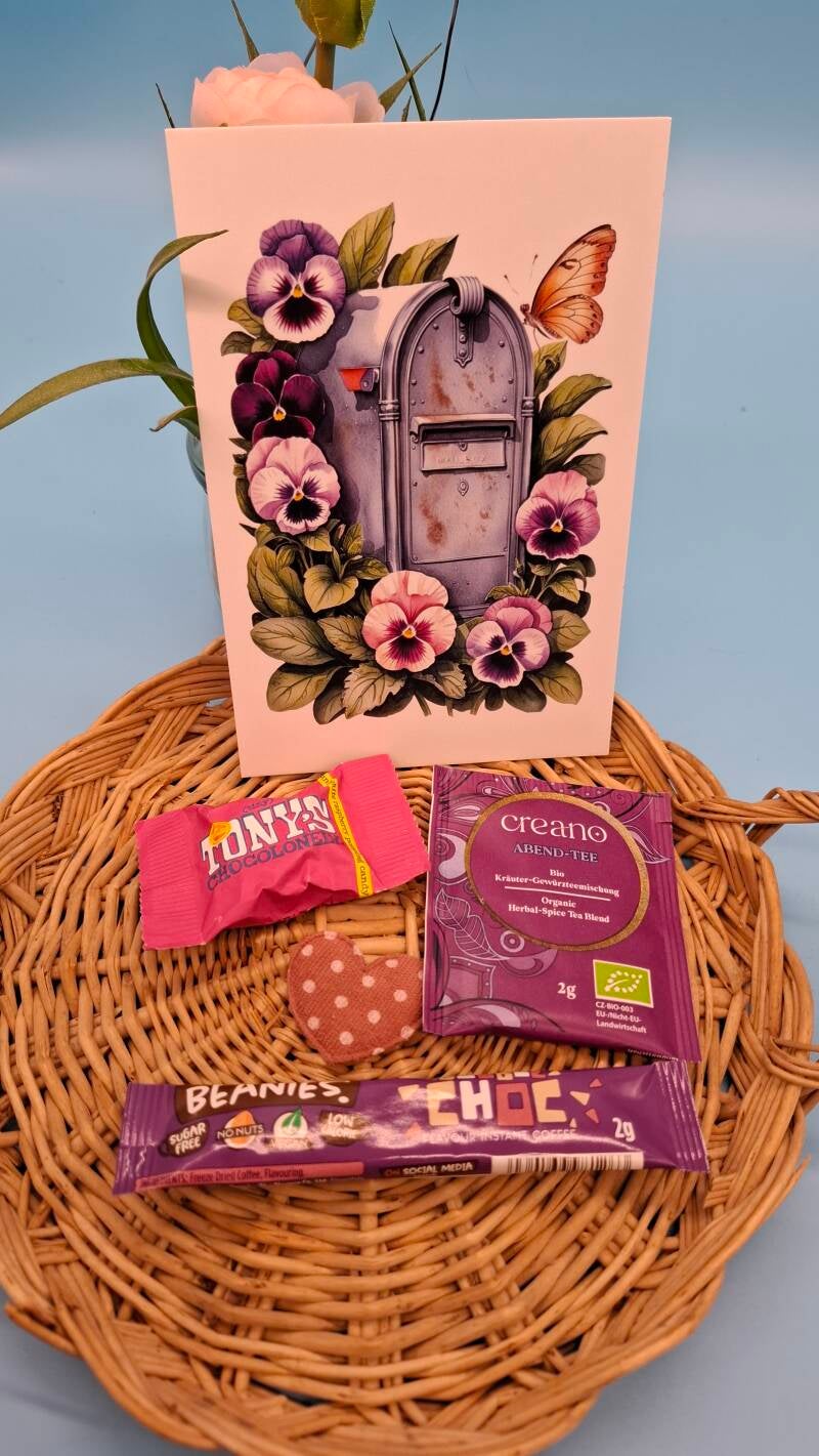 Een vrolijk mini-cadeautje per post! De Kleurrijke Knuffel Brievenbuspost bevat een kaart, een zakje thee, een zakje koffie én een Tony’s Chocolonely mini – allemaal in dezelfde kleur. Past door de brievenbus en perfect om iemand even een warme knuffel te sturen.